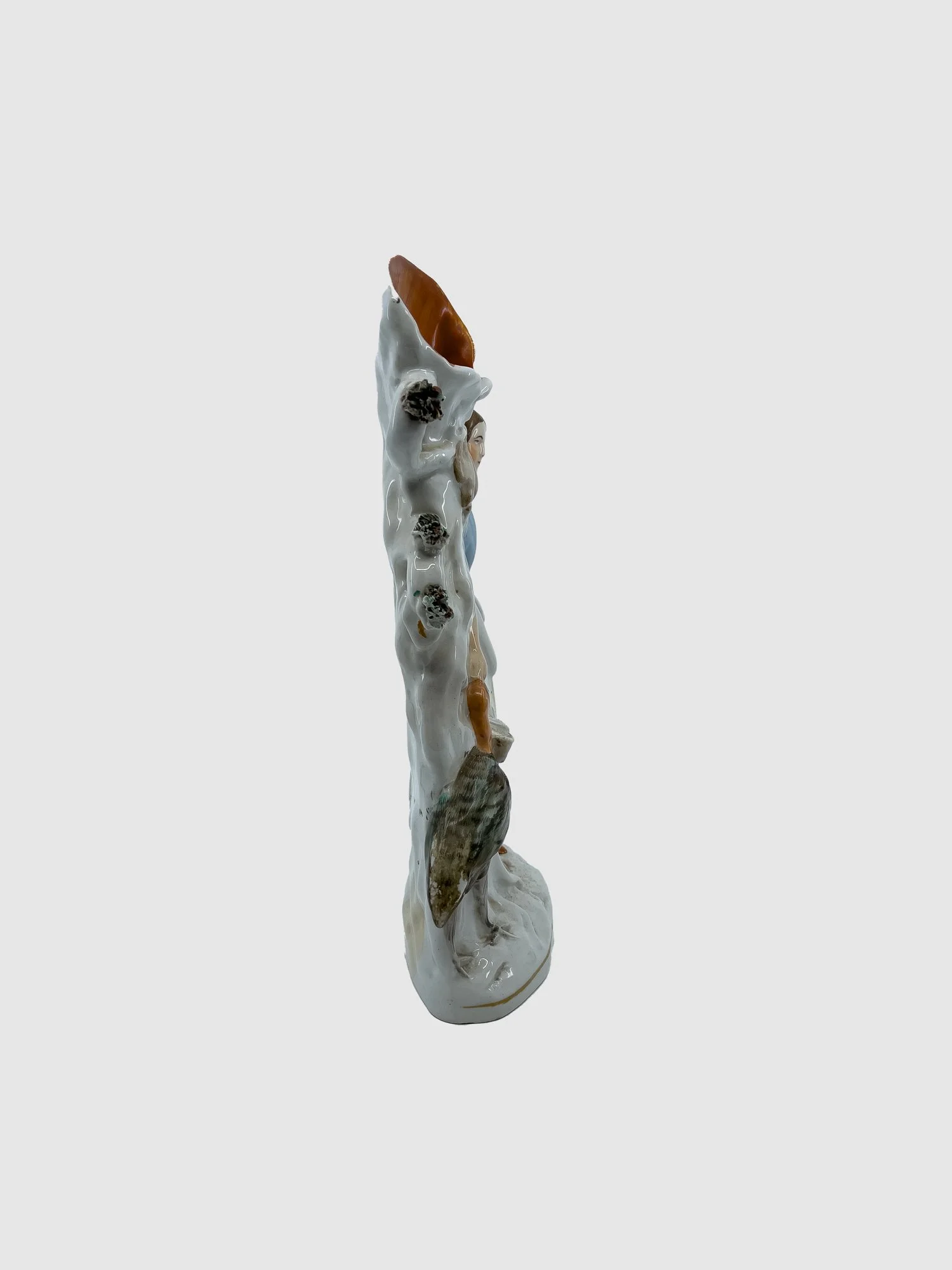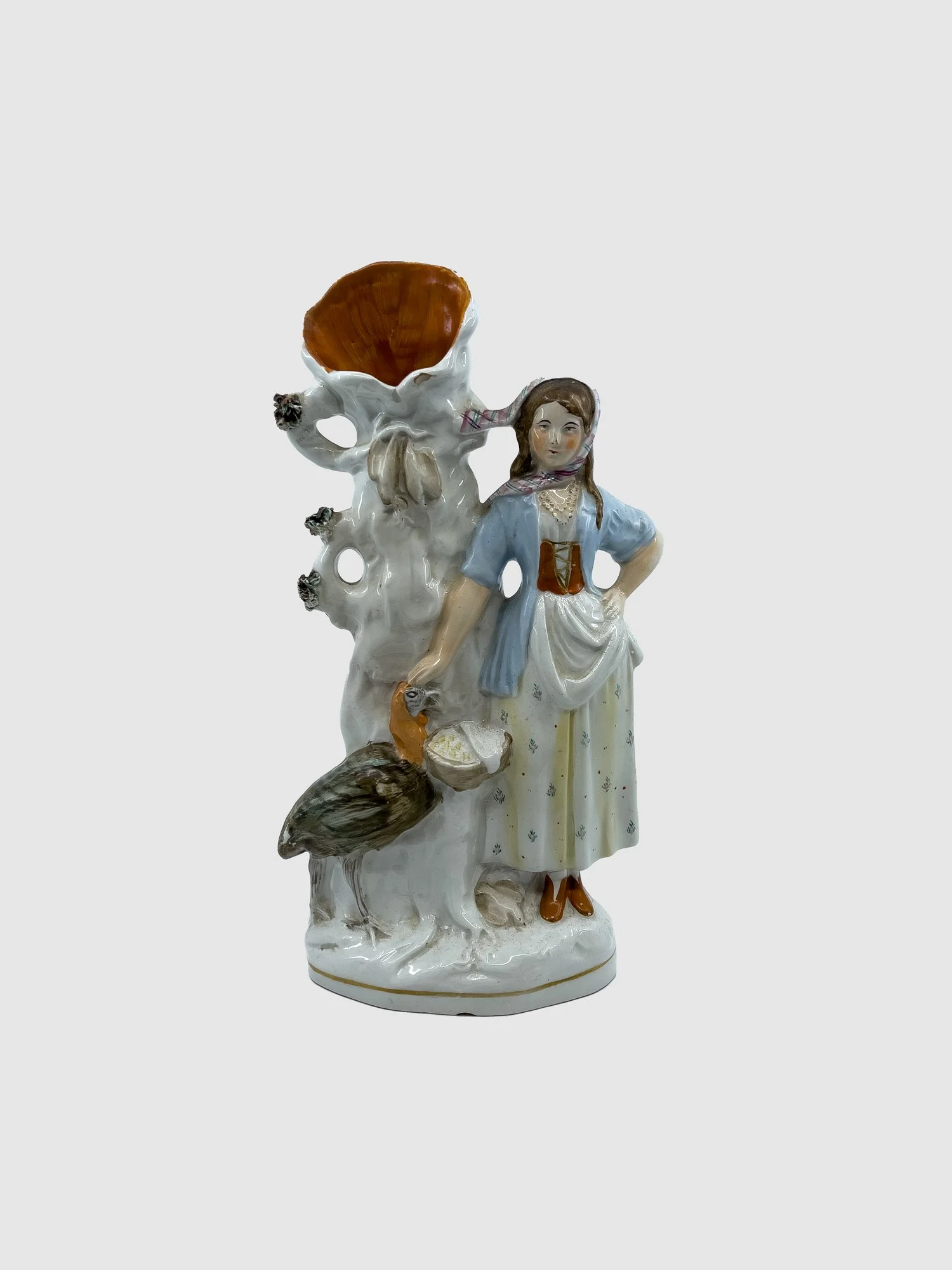 A 19thc Staffordshire spill vase with a young girl & a turkey beside a tree. size: 29cm h x 13cm w ( af 2 small chips to base)